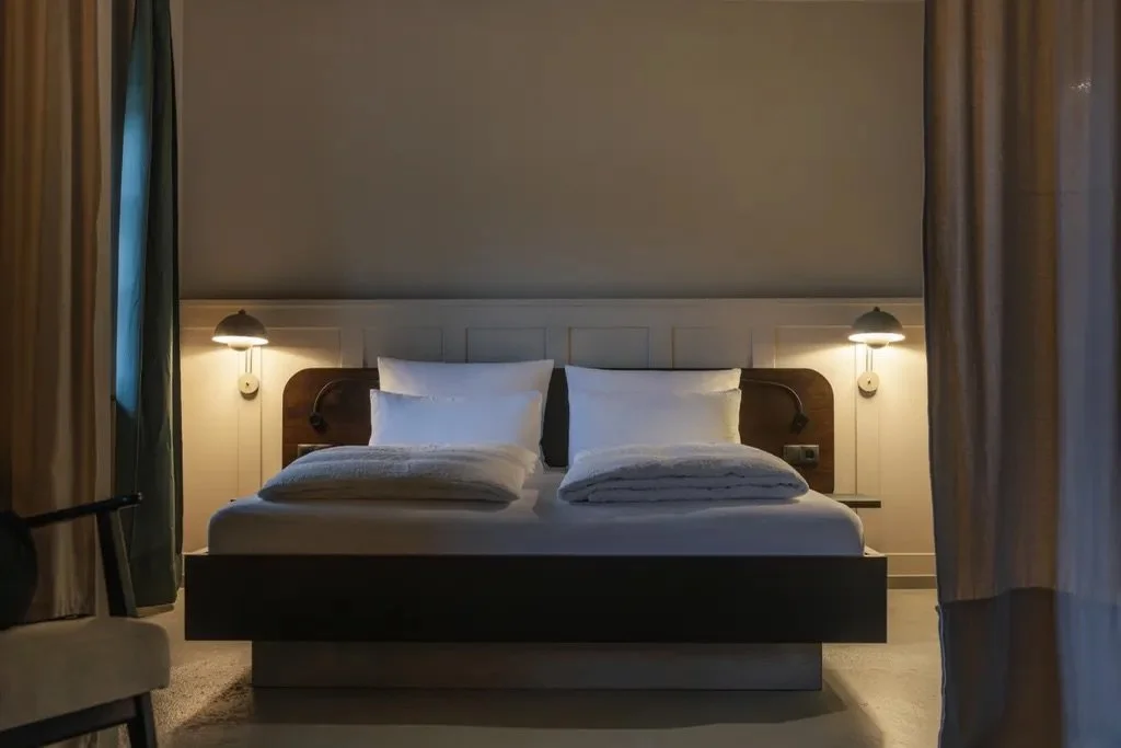 Unsere 19 einfachen Doppelzimmer sind funktional eingerichtet. Alles, was man braucht, ist da - ein kuscheliges Bett, warmes Licht und eine heiße Badewanne. Fernseher gibt es nicht, dafür aber top WLAN.